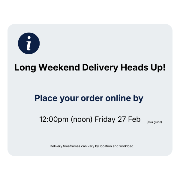 Just let us know where you want your goods delivered and we will get them there. Pick up is also available for Victorian customers.